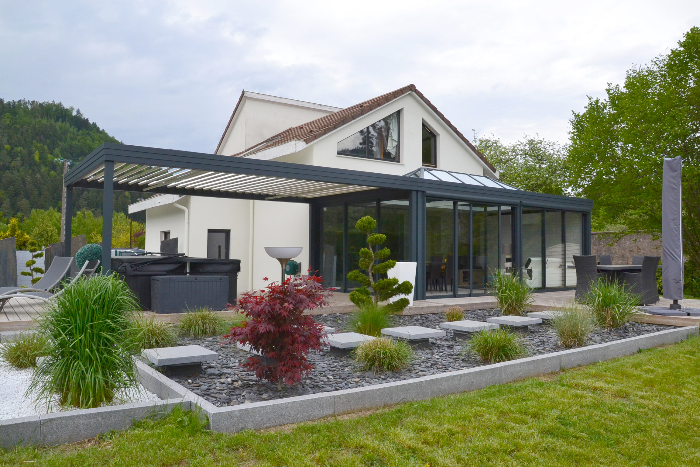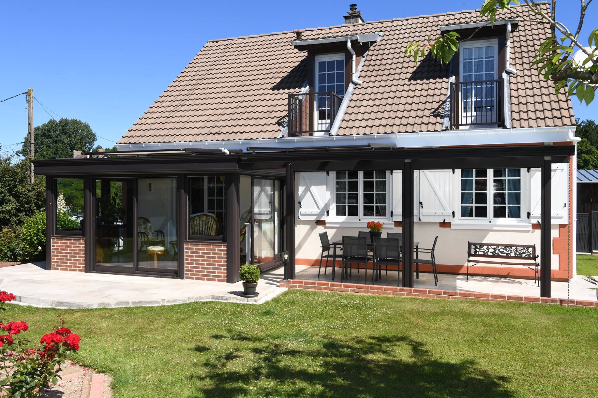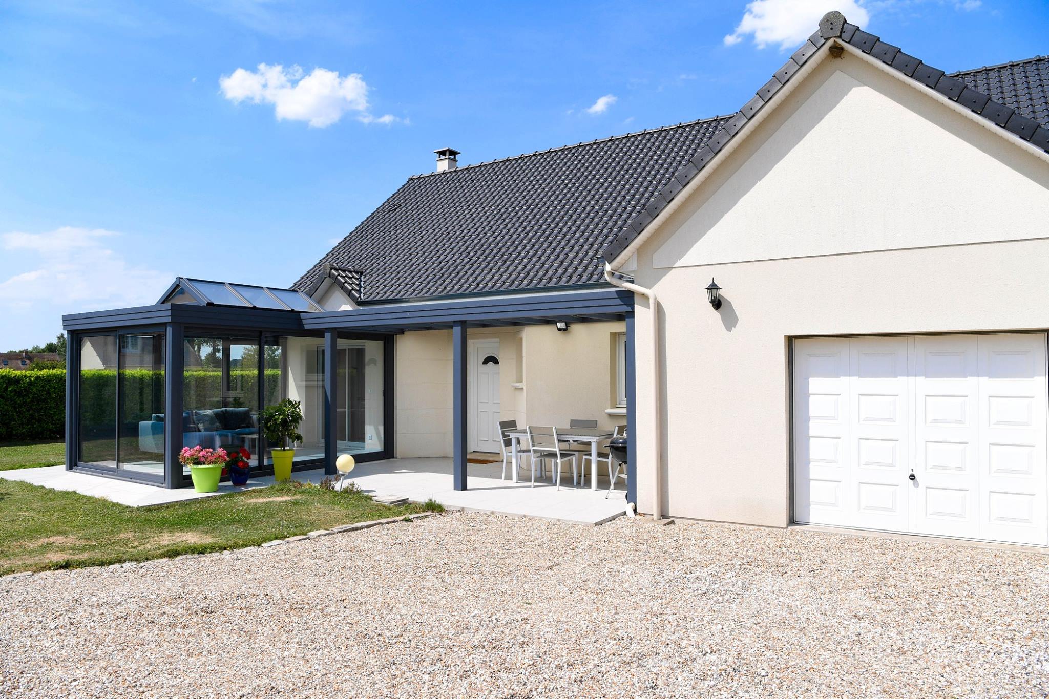 Vous hésitez entre une pergola et une véranda ? Optez pour la combinaison d’une véranda avec pergola. Cela vous permettra d'avoir un espace ouvert et fermé à l’extérieur comme à l’intérieur.